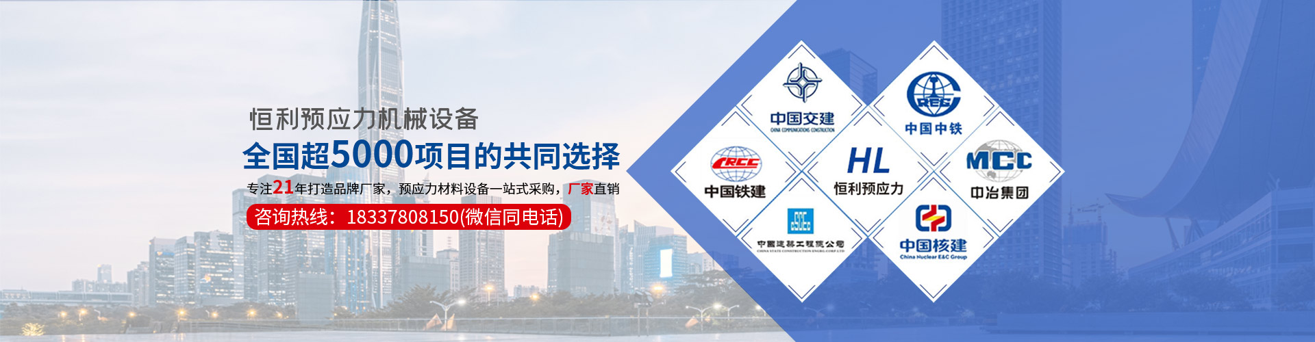 咨詢熱線:18337808150開(kāi)封市恒利預(yù)應(yīng)力機(jī)械設(shè)備有限公司是一家預(yù)應(yīng)力產(chǎn)品研制開(kāi)發(fā),機(jī)具、錨具生產(chǎn)、工程施工為一體的專業(yè)企業(yè)。其產(chǎn)品廣泛用于路橋、市政、高層建筑、電站建設(shè)、巖土錨固、深基坑支護(hù)等工程。公司經(jīng)過(guò)近二十年的發(fā)展,技術(shù)力量雄厚,擁有一批多年從事預(yù)應(yīng)力錨具機(jī)具設(shè)計(jì)、制造與維修和施工的專業(yè)技術(shù)人才,可為用戶提供優(yōu)質(zhì)價(jià)廉產(chǎn)品、良好售后服務(wù)及專業(yè)技術(shù)咨詢。 公司總結(jié)多年...